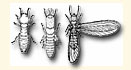 Subterranean termites are social insects that live in colonies consisting of many individuals. The colonies are composed of workers, soldiers and reproductives). The workers, which are about 1/8 inch long, have no wings, are white to cream colored and very numerous. Soldiers defend the colony against insects, like ants, that can attack the colony. Soldiers are wingless and white in color with large brown heads and mandibles (jaws). King and queen termites perform the reproductive functions of the colony. They are dark brown to black in color and have two pairs of wings about twice the length of their body.